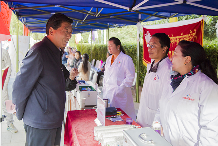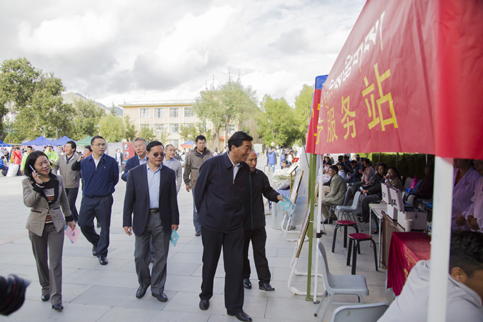 西藏自治區(qū)人大常委會(huì)副主任、西藏大學(xué)黨委書(shū)記尼瑪次仁,西藏大學(xué)黨委委員、副校長(zhǎng)白瑪次仁,西藏大學(xué)黨委委員、副校長(zhǎng)張興堂及西藏大學(xué)各學(xué)院院長(zhǎng)等領(lǐng)導(dǎo)在新生入學(xué)巡查工作中,于阜康醫(yī)院義診點(diǎn)與我院義診人員進(jìn)行了交流,表示校區(qū)定會(huì)全力配合與支持我院的義診工作,并再三對(duì)我院義診隊(duì)表達(dá)了誠(chéng)摯的感謝。