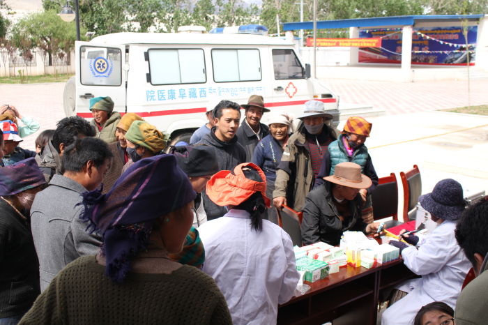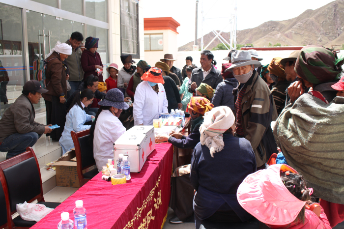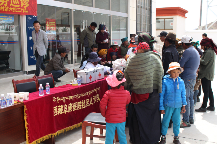 由西藏阜康醫(yī)院內(nèi)科、婦科、心腦血管科、體檢中心8名醫(yī)療、檢驗(yàn)專家組成的義診隊(duì),免費(fèi)為村民進(jìn)行健康體檢、發(fā)放常用藥、健康知識(shí)宣傳和常見(jiàn)病、慢性病的咨詢、初篩、診斷等,把診療和關(guān)愛(ài)送到村民家門口。在義診中,村民們積極與醫(yī)生溝通,詳細(xì)說(shuō)明自己身體的病痛,咨詢各類疾病預(yù)防和健康保健知識(shí)。醫(yī)生們認(rèn)真地給村民量血壓、測(cè)血糖、查身體,診斷病情,宣講慢性病診療、政府治療優(yōu)惠政策等,村民們都稱贊義診醫(yī)生們的熱情和專業(yè)。