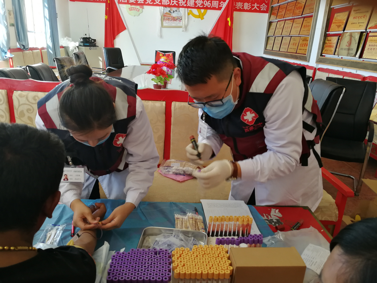 30歲出頭的劉亞美護士受到歲月的眷顧,雖然經常到條件艱苦的地區(qū),卻依然存有小姑娘清秀的臉龐,劉護士工作極其認真,操作技能非常嫻熟,目前我還沒有看到過她扎針失敗的案例,群眾還用藏語夸她,人長得美,扎針一點不疼。劉亞美護士家里還有一個5歲的男孩,在四川老家,爺爺在照顧,在交談中我能從她的語言里感受到,遠隔千山萬水的思念,當有抽血哇哇大哭的小朋友時,她總是溫柔地摸著他的小臉柔聲細語地安慰,對孩子細致的關愛,更展現了作為一位偉大母親天性。
