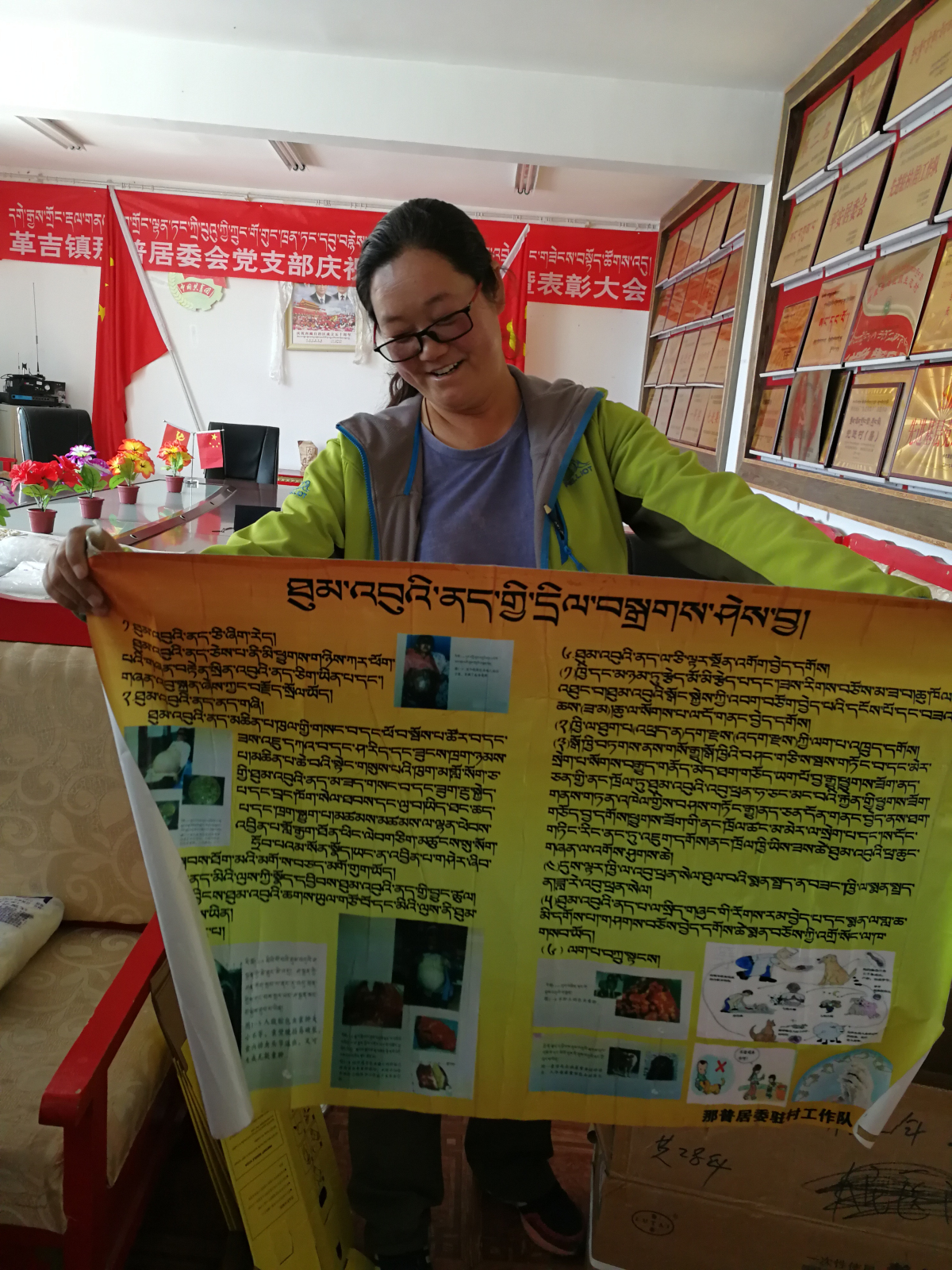 為了做好包蟲病宣傳工作,她自己設計了很多藏語版的包蟲病宣傳資料,挨家挨戶宣傳指導,為了與群眾打成一片,她自學家電維修,誰家里電器壞了第一個準是給她打電話。