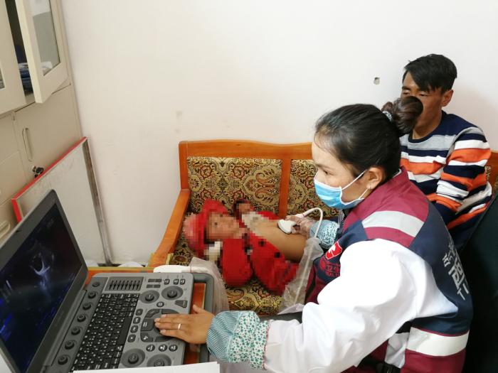 旺姆(化名),三歲,是同爸爸媽媽一起來的篩查中心,旺姆有一雙大大的眼睛,聲音非常甜美,看我在照相,害羞地往媽媽的背后躲,又好奇地探出小腦袋,非??蓯?,爸爸媽媽體檢時她安靜地站在旁邊看,不哭不鬧,是個安靜的小寶寶,輪到小旺姆體檢時,爸爸把她放在床上,格桑拉吉讓她躺下,小旺姆乖乖地躺好任由探頭在她的小肚子上劃來劃去。突然格桑拉吉臉色沉重,從衣服包里掏出手機,開始拍B超機屏幕,我心里一緊,悄悄問她,她只是點頭,三歲的旺姆(化名)被診斷為疑似病例。