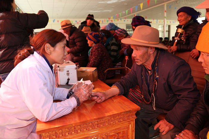 隨后,西藏阜康醫(yī)院義診醫(yī)療隊開始了義診活動:測血糖、量血壓、拔火罐、問診送藥。老人們求醫(yī)問藥,熱情踴躍,義診醫(yī)療隊認(rèn)真地接待每一位咨詢者,并細(xì)致聆聽與診斷,耐心解答他們心中的疑問,對需要進一步治療的老人提供詳細(xì)的診療指導(dǎo),整個活動大廳秩序井然,醫(yī)務(wù)人員的細(xì)致和耐心受到了老人們的一致好評。