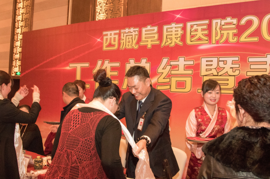 2016年1月19日下午3點半,西藏阜康醫(yī)院2015年度總結暨表彰大會在香格里拉大酒店隆重舉行,本次2015年度總結表彰大會由敖德秀副院長主持,王斌董事長、陳彬總經(jīng)理、張德才總院長、劉連福副院長、張治副院長、李君副院長、何靜院長助理等各位院領導及三家醫(yī)院、體檢中心全體員工參加本次會議。