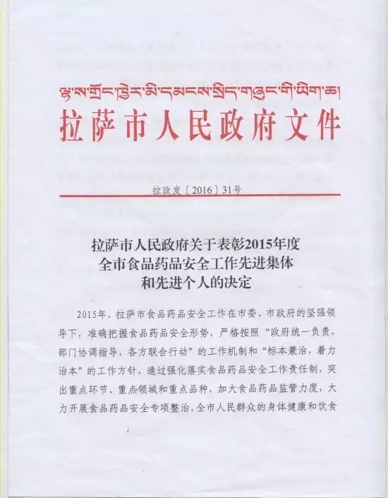 本次會(huì)議還就2015年度在全市食品藥品安全工作中表現(xiàn)突出的市農(nóng)牧局等19個(gè)縣(區(qū))、單位給予了表彰。西藏阜康醫(yī)藥發(fā)展有限公司也因在2015年食品藥品監(jiān)督管理工作中表現(xiàn)突出榮獲表彰并獲得“2015年全市食品藥品安全工作先進(jìn)集體”榮譽(yù)稱號。劉瀟瀟總經(jīng)理代表阜康醫(yī)藥發(fā)展有限公司接受了本次表彰。她表示阜康醫(yī)藥發(fā)展有限公司能夠獲得本次表彰是整個(gè)阜康的驕傲,在今后的工作中我們一定會(huì)珍惜榮譽(yù),再接再厲,充分發(fā)揮示范帶頭作用,努力再創(chuàng)工作佳績,為西藏食品藥品安全作出自己的貢獻(xiàn)。