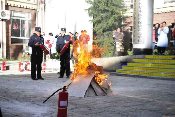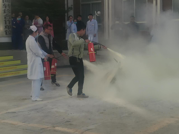 第二部分在我院住院區(qū)大院內(nèi),消防隊(duì)員進(jìn)行了現(xiàn)場(chǎng)演示,講解了如何使用滅火器,并現(xiàn)場(chǎng)點(diǎn)燃了一堆火,使用滅火器將大火撲滅,以直觀的方式,告訴醫(yī)護(hù)人員如何使用滅火器材;我院?jiǎn)T工也派出后勤、臨床代表參加了演練。