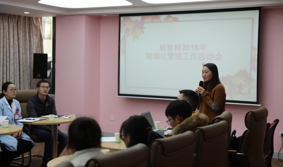 會(huì)議開(kāi)始,首先由何靜主任介紹了檢驗(yàn)科精細(xì)化管理工作實(shí)施計(jì)劃和具體實(shí)施細(xì)則。
