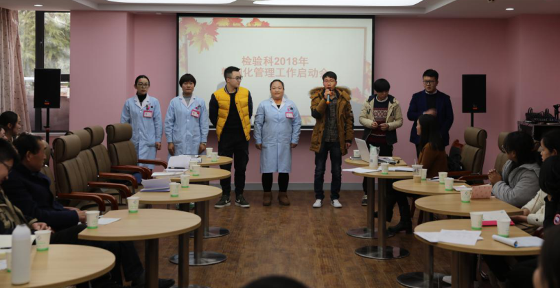 檢驗(yàn)科新進(jìn)管理人員集體表態(tài):“我們會(huì)服從醫(yī)院領(lǐng)導(dǎo)和科室主任的安排,與科室所有員工一起做好科室精細(xì)化管理工作,請(qǐng)?jiān)侯I(lǐng)導(dǎo),科室主任放心。”