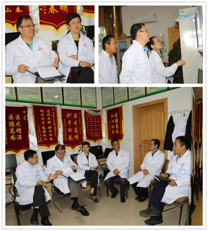 回到消化內(nèi)科醫(yī)生值班室,周平紅教授和阜康醫(yī)院醫(yī)護(hù)人員一起進(jìn)行會診。周平紅教授認(rèn)真聽取了阜康醫(yī)院消化內(nèi)科醫(yī)生的匯報,仔細(xì)查閱患者的各種檢查資料,對幾起復(fù)雜病例指明了診治方向。