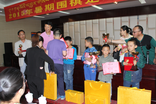 7月28日, 拉薩市2015年暑期圍棋定級/定段賽頒獎儀式在拉薩棋院三樓會議室召開,出席嘉賓有拉薩棋院院長王斌、拉薩棋院秘書長及職業(yè)圍棋隊教練陳盈女士、拉薩棋院圍棋部副主任趙鈞、棋院老師陳學(xué)滸及本次參賽的學(xué)生和家長。首先王斌院長代表拉薩棋院歡迎大家的到來。從今年4月26日拉薩棋院成立到現(xiàn)在不到半年的時間,就已經(jīng)在5月1日、2日成功的舉辦了“2015春季‘阜康杯’拉薩市少兒圍棋定級賽”,并得到了各界的大力支持和認(rèn)同。為了改善棋手們的學(xué)棋環(huán)境,棋院又投資數(shù)萬元購置棋桌、棋盤等設(shè)施,棋院在每間教室的休息區(qū)均安裝了WiFi。據(jù)王斌院長介紹,棋院準(zhǔn)備接下來培養(yǎng)更多的圍棋老師到各大幼兒園、小學(xué)教授圍棋,待辦學(xué)條件成熟還可能增加書法等項目,讓西藏的適齡小孩得到更多的琴棋書畫的熏陶及教育。