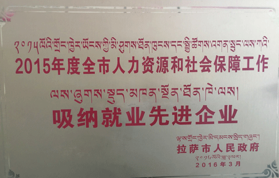 2015年度全市人力資源和社會(huì)保障工作吸納就業(yè)先進(jìn)企業(yè)拉薩市人民政府