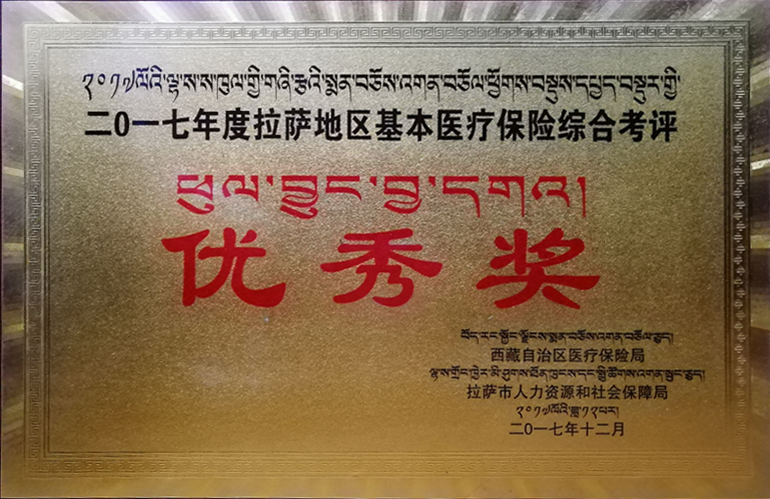 2017年度拉薩地區(qū)基本醫(yī)療保險(xiǎn)綜合考評(píng)優(yōu)秀獎(jiǎng)西藏自治區(qū)醫(yī)療保險(xiǎn)局 拉薩市人力資源和社會(huì)保障局