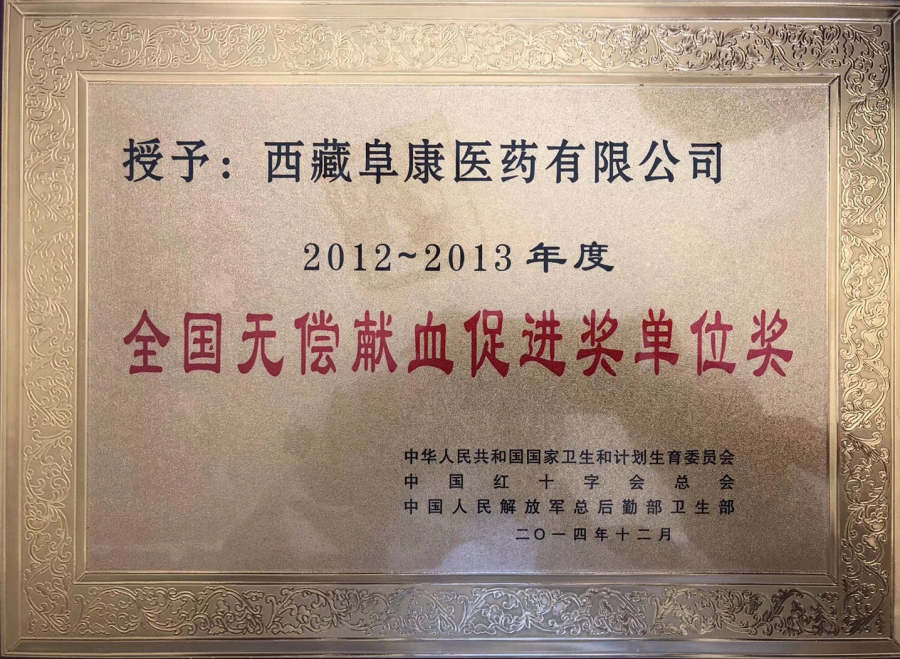 2012-2013年度 全國(guó)無(wú)償獻(xiàn)血促進(jìn)獎(jiǎng)單位獎(jiǎng)中華人民共和國(guó)國(guó)家衛(wèi)生和計(jì)劃生育委員會(huì)