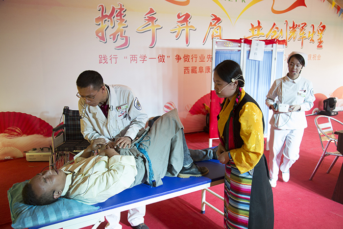據(jù)了解,塔巴次仁因不幸患有腦癱疾病而一直不能下地走路,只能依靠輪椅出行,但自十余日前在我院針灸理療科接受相應(yīng)治療至今,塔巴次仁的病情獲得明顯好轉(zhuǎn),現(xiàn)已可以開始嘗試離開輪椅自己走路;為了表達(dá)自己與親人對阜康全體醫(yī)護(hù)人員的感謝,不會漢語的塔巴次仁堅持學(xué)習(xí)并在林卡演出現(xiàn)場為大家演唱了一首《感恩的心》。塔巴次仁的康復(fù),無疑是一個令大家喜悅的好消息,我們共同祝愿他能盡早的徹底離開輪椅,能像正常人一樣,可以用自己的雙腳去到任何一個自己想去的地方!