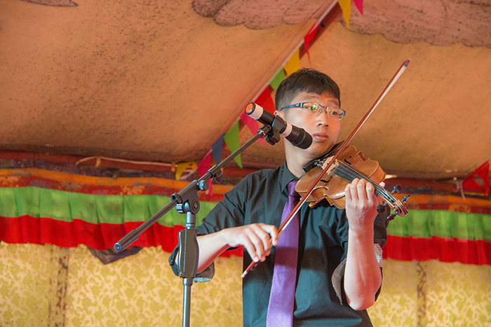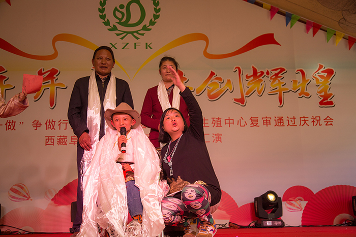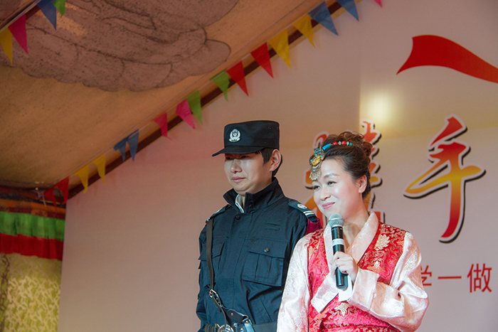 看藏裝典雅,賞舞姿婀娜。在三位主持人熱情洋溢的主持下,一曲優(yōu)雅典美的藏舞《芒康弦子》正式拉開了本次林卡文藝匯演的帷幕,也再度點燃了大家的林卡情懷!隨后,由醫(yī)院各科室員工帶來的諸如藏語歌曲演唱、小提琴演奏、架子鼓演奏、吉他演奏、古箏演奏、軍禮表演、現(xiàn)代舞蹈、獨舞、歌唱、小品、相聲、T臺秀、大合唱等一系列精彩紛呈的節(jié)目應(yīng)接不暇地呈現(xiàn)在大家眼前,讓現(xiàn)場觀眾為之歡呼雀躍,好不開懷。同時,在本次的林卡文藝匯演中,還有一個十分特殊的節(jié)目——一個名為塔巴次仁的藏族小男孩及其家屬為我們?nèi)w阜康工作人員寫來一封感謝信,并在林卡演出現(xiàn)場為大家演唱了一首《感恩的心》。