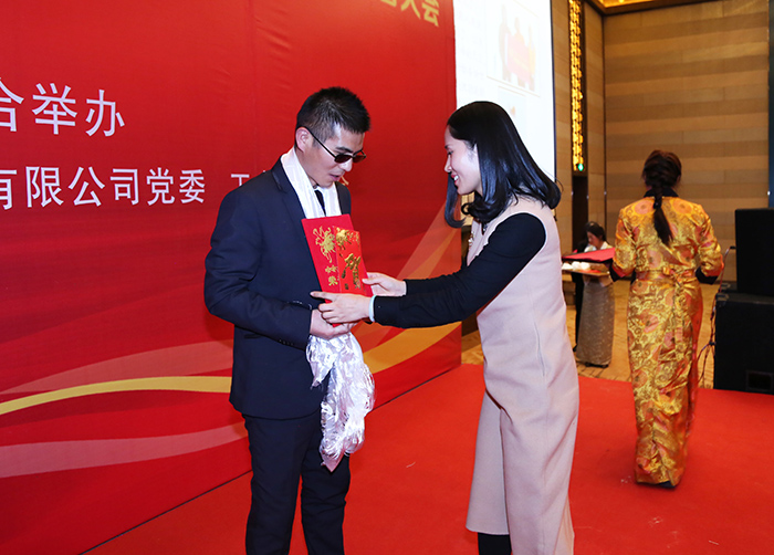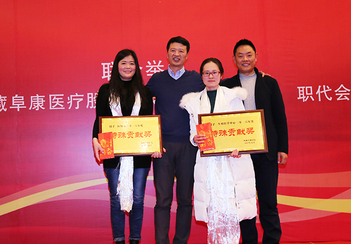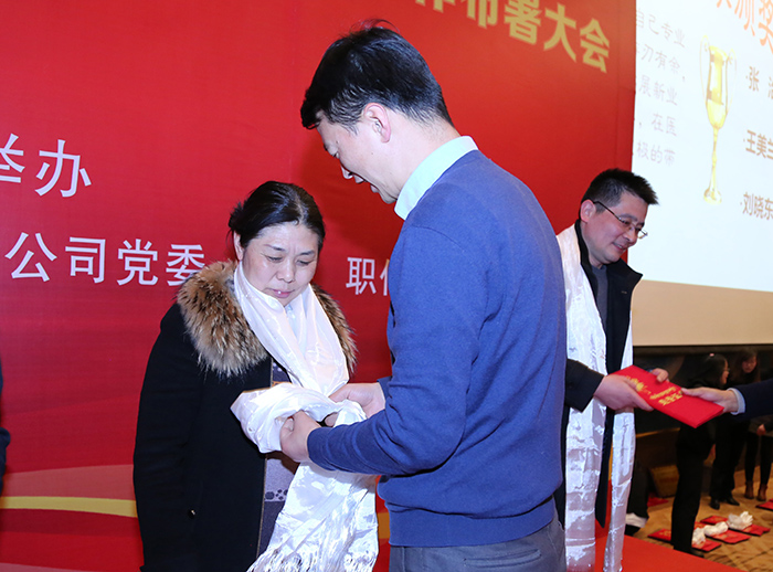 王斌董事長、劉瀟瀟總經(jīng)理等院領(lǐng)導(dǎo)為先進(jìn)科室、優(yōu)秀員工頒發(fā)獎(jiǎng)?wù)录蔼?jiǎng)金
