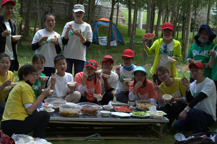 到達(dá)公園后,大家開(kāi)始支鍋,洗菜的洗菜、烹飪的烹飪、玩兒的玩兒……好不熱鬧。不多久,一頓饕餮大宴就上桌了。在大快朵頤之后大家開(kāi)始做活動(dòng),拾垃圾、踢毽子、吹氣球等,一系列既環(huán)保又能體現(xiàn)團(tuán)隊(duì)協(xié)作比賽活動(dòng)拉近了所有參與者的距離,最后還為所有參與者贈(zèng)送了小禮品。大家在歡歌笑語(yǔ)中享受到了一頓豐盛的“綠色大餐”。