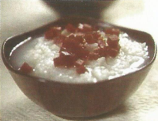 【做法】生地黃(鮮品洗凈細(xì)切后,用適量清水在火上煮沸約30分鐘后,潷出藥汁,再?gòu)?fù)箭煮一次,兩次藥液合并后濃縮至100ml,備用。將大米洗凈煮成白粥,趁熱加入生地汁,攪勻食用時(shí)加入適量白糖調(diào)味即可。