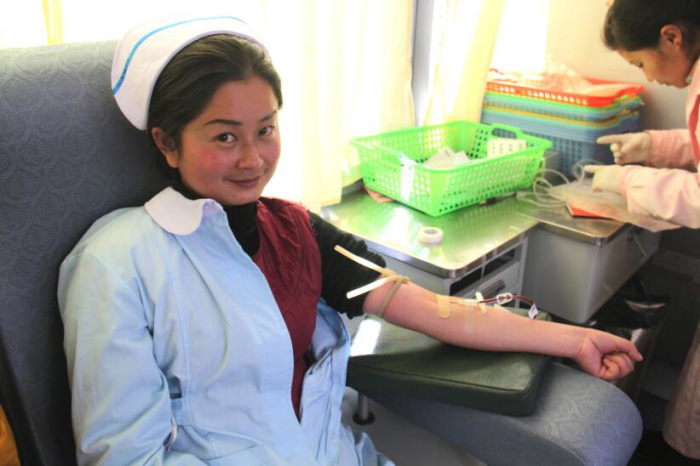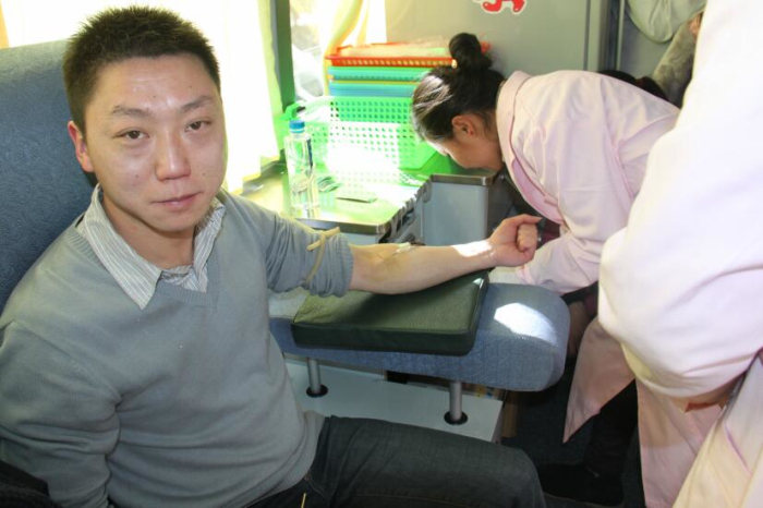近日拉薩市血庫全線告急,血庫面臨血荒的危機(jī)。在得知這一緊急情況后王斌懂事長、劉瀟瀟總經(jīng)理立即組織阜康員工積極獻(xiàn)血,在阜康各位領(lǐng)導(dǎo)的帶領(lǐng)下,2013年1月30日他們來到阜康婦產(chǎn)兒童醫(yī)院血液中心采血點(diǎn)義務(wù)獻(xiàn)血。采血現(xiàn)場筆者看到在阜康婦產(chǎn)兒童醫(yī)院呂果梅副院長和拉薩大藥房何文秀店長的組織下大家排著整齊長隊(duì)等待獻(xiàn)血。筆者有幸采訪到了阜康醫(yī)院心腦血管分院內(nèi)科主任于永軍,據(jù)于主任介紹他已是多次參與獻(xiàn)血,阜康的員工都是很無私的,很多時(shí)候在面臨病人急需輸血而血站又缺血的情況下阜康員工就會(huì)自發(fā)組織在一起去血站為病人獻(xiàn)血,這種情況總是經(jīng)常出現(xiàn)。于主任告訴筆者自己獻(xiàn)血也是想起到一個(gè)帶頭的作用,很多人不愿獻(xiàn)血就是怕對(duì)身體有傷害,醫(yī)生護(hù)士積極獻(xiàn)血能告訴大家適當(dāng)獻(xiàn)血不但對(duì)身體沒有害處還有利于身體健康。