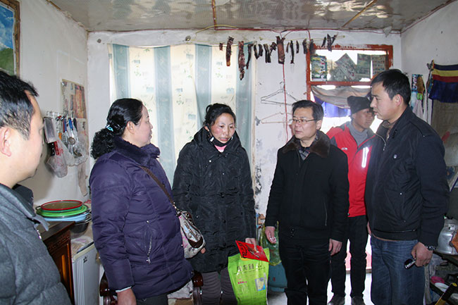 阜康婦產(chǎn)兒童醫(yī)院保潔組組長昂旺桑姆租住在區(qū)防疫站低矮的出租房里,房子面積小、背陰,即使在陽光燦爛的日子里也須一直生火取暖。她的丈夫患有嚴重的高原心臟病,已經(jīng)喪失了勞動能力,每日在家養(yǎng)病,所需醫(yī)療費用成為家中一個極大的支出項目,與此同時,她一個人的工資還要負擔兩個孩子的學費、生活費,為此一家人只能租住在租金便宜、條件惡劣的出租房里?;顒赢斕?,當院領導來到她家時,因為房子面積太小,一進入室內(nèi)就已經(jīng)無法轉身,顯得特別的擁擠,說起家里的困難時,昂旺桑姆語帶哽咽,淚盈于睫。