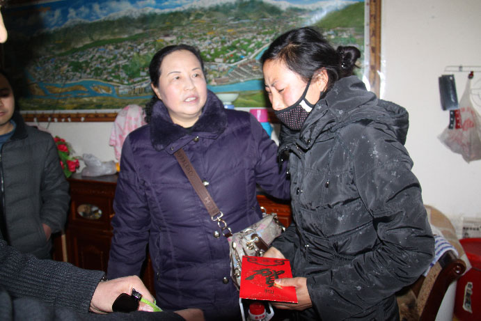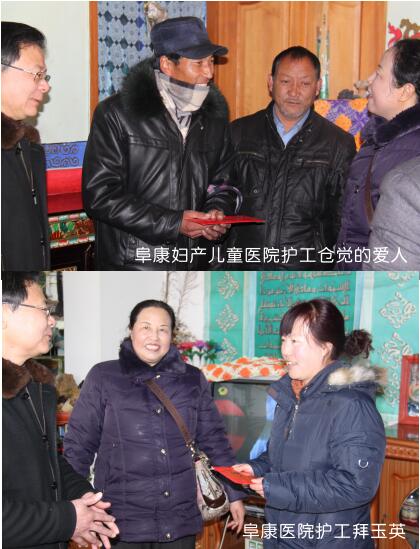 阜康集團在2013年春節(jié)、藏歷年來臨之際,在阜康醫(yī)院、阜康婦產(chǎn)兒童醫(yī)院、阜康(國際)健康體檢中心三家醫(yī)院開展了“進職工門、知職工情、暖職工心”送溫暖活動。1月22日,公司下發(fā)了《關于開展2013年“雙節(jié)”送溫暖及特困職工幫扶活動的通知》;2月1日,三個醫(yī)院的院領導對提交申請的員工進行了資格審查,并最終確定了9名符合條件的員工為此次送溫暖活動對象;2月3日,由阜康醫(yī)院李鋼副院長、劉連福副院長、阜康婦產(chǎn)兒童醫(yī)院呂果梅副院長、阜康(國際)健康體檢中心席大力副院長帶隊,逐一將慰問金、大米食用油等慰問品送到了困難員工的家中。阜康婦產(chǎn)兒童醫(yī)院保潔員窮達的父母在她年幼時已經(jīng)過世,由于沒有文化,她只能選擇當清潔工養(yǎng)家糊口,每月不到兩千塊錢的工資要供養(yǎng)弟弟妹妹上學,要給弟妹生活費、購買學習資料的費用,偶爾還要給弟妹買身新衣服,帶他們吃一頓好吃的,買一些營養(yǎng)品。為了省下在外租房的錢,她選擇了入住醫(yī)院的員工宿舍,每天吃、住、上班都在醫(yī)院,她現(xiàn)在最大的心愿就是好好供養(yǎng)自己的弟弟妹妹上學,讓他們考上大學有一個美好的前程,不用像自己一樣干最累的活掙最少的錢。窮達是一個愛笑的女孩子,即使說起這些困難時也總是堅信只要弟弟妹妹有出息了,以后的日子就會好起來,她的樂觀向上時刻感染著身邊的每一個人,然而當院領導將慰問金慰問品送到她手中時,這個堅強的女孩卻第一次在人前落了淚。阜康婦產(chǎn)兒童醫(yī)院保潔員曲宗租住在奪底路某個環(huán)境極差的小院子里20平方不到的出租房里,這樣的一間小房子是臥室是客廳也是廚房,然而生活的艱辛卻比不上她不幸的遭遇,她的丈夫沒有工作,一家人的生活全靠她微薄的工資,如果僅僅是如此還算差強人意,她那個不務正業(yè)的丈夫卻還經(jīng)常向她伸手要錢到外面去賭博、喝酒,一旦拒絕便是拳腳相向,且多次將她打得無法上班,甚至將她悄悄存起來的錢偷拿去喝酒賭博,每每說起這些事情,曲宗便是淚流滿面,無法自持,讓聞者無不為之心酸。