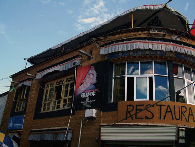 在拉薩工作快5年,第一次去了瑪吉阿米,這是一個愛情傳說醞釀岀來的藏餐廳。為了倉央嘉措與瑪吉阿米的邂逅傳說,為了感悟詩人“在那東山頂上,升起皎潔月亮,瑪吉阿米的面容,漸漸浮現(xiàn)心上”那句情詩,為了尋覓瑪吉阿米的足跡,我順著八廓街繞到了東南角,一座橙黃色三層藏式小樓映入眼簾。