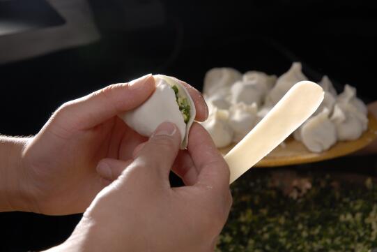 看著爺爺搟面皮會(huì)覺(jué)得很過(guò)癮,這活兒我和弟弟卻干不了。于是,爺爺會(huì)找出一個(gè)杯蓋,將面皮搟出一大張,我跟弟弟就拿著杯蓋一個(gè)一個(gè)的按,按好的面皮變成了一張一張的圓。爺爺包的餃子很好看,也很飽滿,照著爺爺教我們的方法包出來(lái)的餃子,卻是形狀各異的。盡管這樣,我們還是會(huì)很開(kāi)心。