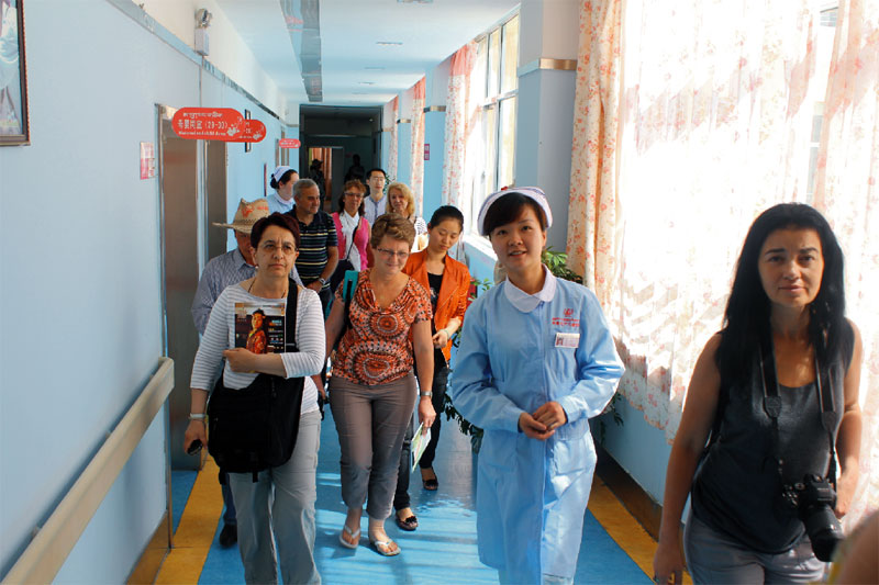 下午三點半,由董事長秘書李霞、護理部主任龍琦帶隊,參觀了嬰兒洗浴中心、ⅦP病房、自助廚房、圖書館等各項設(shè)施。據(jù)了解,來我院參觀的法國護士團隊里有部分人員曾于十年前到西藏了解過當時的醫(yī)療條件,那時候,西藏的醫(yī)療條件落后,環(huán)境也大不如現(xiàn)在。此次參觀中,他們對于西藏醫(yī)療衛(wèi)生行業(yè)的快速發(fā)展,醫(yī)療條件的極大改善表示驚嘆,并紛紛拿起相機拍攝。