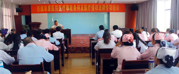為了加強(qiáng)我院醫(yī)療質(zhì)量和醫(yī)療安全管理,防范醫(yī)療糾紛和醫(yī)療損害及事故,提高醫(yī)療糾紛調(diào)處能力和水平,創(chuàng)建和諧的醫(yī)患關(guān)系,2014年6月14至15日,我們特別邀請(qǐng)到西藏偉豪律師事務(wù)所律師同時(shí)也作為我院法律顧問(wèn)的胡可律師到我院開(kāi)展為期兩天的“關(guān)于醫(yī)療事故條例及醫(yī)療侵權(quán)”的法律專項(xiàng)培訓(xùn)。