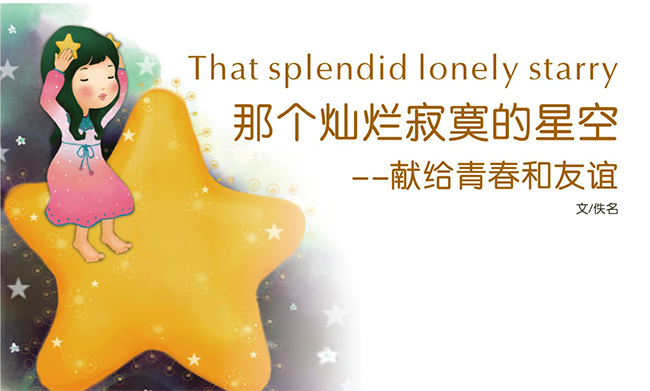 等濃霧散去后,就可以看到最美麗的星空了。”我們是否也能像他們一樣,跳進(jìn)那滿天的星海里,頭枕著星星,卻看見燦爛的陽(yáng)光。我不知道,有陰影的地方,是否必定有光。仰望星空,我還是愿意相信,你或者其他人,曾經(jīng),正在從世界的某個(gè)地方向我走來。