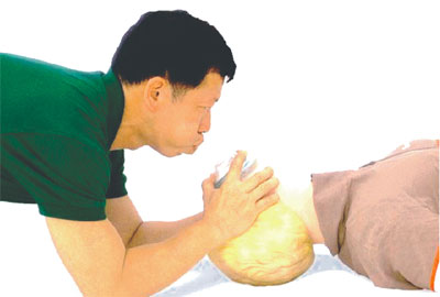 搶救步驟:對(duì)于非專(zhuān)業(yè)人員,首先應(yīng)該將患者仰面置于硬地或硬木板上,頭偏向一側(cè),找準(zhǔn)胸外心臟按壓的部位——簡(jiǎn)單的方法即患者兩乳頭連線與胸骨交叉點(diǎn),找準(zhǔn)位置后立即按壓,并同時(shí)向周?chē)藛T尋求幫助:撥打120;尋求能一起參與搶救者。