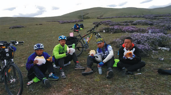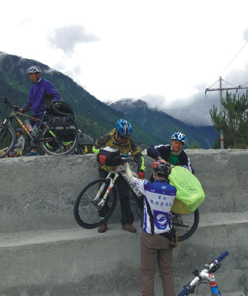從陵園出來不久,得知那個女隊友還是堅持騎行,于是我返回去接她,陪她一起騎行。當我在路上碰到她的時候,她笑著問我為什么不在前面等。要多走這么一段路。我說我害怕孤單所以找你陪我一起,她感動得什么也沒說。這一天我們互相幫助通過了一段好幾公里的落石區(qū)。