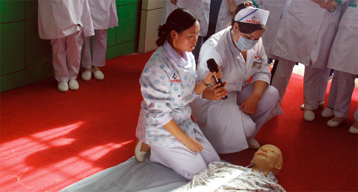 為了進(jìn)一步規(guī)范我院職工心肺復(fù)蘇技能操作,同時(shí)通過模擬院內(nèi)突發(fā)急救事件,強(qiáng)化流程培訓(xùn),提高全院人員的急救意識(shí),達(dá)到全員熟練掌握的目的, 2015年6月26日下午,我院組織舉辦心肺復(fù)蘇培訓(xùn)班。全院60多名護(hù)理人員參加了培訓(xùn)。急診科護(hù)士黃燕妮向參加培訓(xùn)的護(hù)理人員詳細(xì)講解了心肺復(fù)蘇緊急救護(hù)的基本原則、方法與步驟,通過現(xiàn)場(chǎng)模擬演練,讓參訓(xùn)人員對(duì)心肺復(fù)蘇的全過程有了更加深刻的理解。