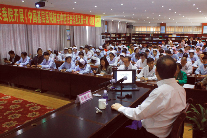 2015年8月24日,北京安貞醫(yī)院腦卒中中心主任、留美醫(yī)學(xué)博士、心血管外科教授、頸動(dòng)脈內(nèi)膜剝脫術(shù)(CEA)專家、中美腦中風(fēng)協(xié)助組中方組長(zhǎng)張勤奕先生不遠(yuǎn)萬里來我院視查工作,并開展了《中國基層醫(yī)院腦卒中防治合作及發(fā)展計(jì)劃》講座。