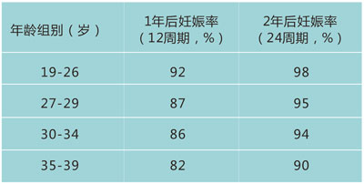 根據(jù)上述結(jié)果,超過80%的夫婦在女性年齡<40歲,未采取避孕措施,規(guī)律性生活(每周2次)的情況下一年內(nèi)會(huì)懷孕;第一年未懷孕者,有一半將在第二年內(nèi)懷孕。因此,生育年齡夫婦在性生活正常,而1年仍未懷孕時(shí),可以進(jìn)行生育咨詢,或關(guān)于不孕的初步檢查,推薦夫婦同時(shí)就診。對(duì)于女性年齡超過36歲,試孕半年不孕;或是存在不孕風(fēng)險(xiǎn),如月經(jīng)不調(diào)者,建議及時(shí)就診,由生殖??频尼t(yī)師提供生育咨詢。