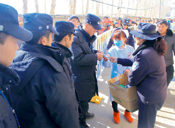 2016年2月5日,在春節(jié)(藏歷新年)來臨之際,西藏阜康(國際)體檢中心受拉薩市公安局的邀請,為一年一度的“色拉崩堅”重大佛事活動執(zhí)勤的民警義診。 2月5日上午,西藏阜康(國際)健康體檢中心、阜康心腦血管分院派出專家及護理人員,攜帶16種普藥近400盒,與電子血壓計,聽診器奔赴色拉寺,從曲米路開始一直到色拉寺,為駐守色拉寺朝佛路上的廣大執(zhí)勤民警送醫(yī)送藥?;顒又?,部分執(zhí)勤民警因寒冷、疲勞而出現(xiàn)有嗓子疼、拉肚子等身體不適,我們的義診醫(yī)療隊及時為其診療并贈送藥物。