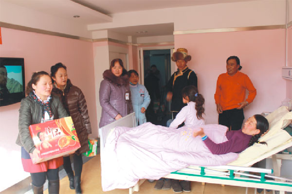 由陳彬總經理、敖德秀副院長、張治副院長、何靜院長助理帶隊的雙節(jié)慰問小組分別于2月6日集中慰問春節(jié)期間堅守崗位的專家、2月8日(大年初一)慰問醫(yī)院各科室、2月9日(藏歷初一)慰問不能出院與家人團聚的患者,院領導代表公司和王斌董事長為他們送去了節(jié)日的關懷。