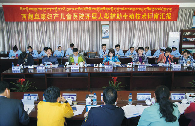 2016年8月19日上午10時許,西藏阜康婦產(chǎn)兒童醫(yī)院人類輔助生殖技術(shù)評審匯報會在西藏阜康婦產(chǎn)兒童醫(yī)院四樓會議室正式開評,孫瑩璞、范立青、趙永平、翁寧、林戈、呂杰強、朱文兵等7位國家衛(wèi)計委專家?guī)鞂<疑W臨我院進行評審。扎西旺姆、次仁、姜海燕、匡雪蓮、劉貝貝、葉曉梅、次仁白珍、遲洪濱、劉中娟等9位自治區(qū)、拉薩市衛(wèi)生計生委的領(lǐng)導;西藏大學高原醫(yī)學研究中心主任、西藏阜康婦產(chǎn)兒童醫(yī)院生殖倫理委員會主任歐珠羅布;西藏阜康婦產(chǎn)兒童醫(yī)院王斌董事長、8位院領(lǐng)導以及我院生殖中心各相關(guān)人員等參加了本次評審匯報會。