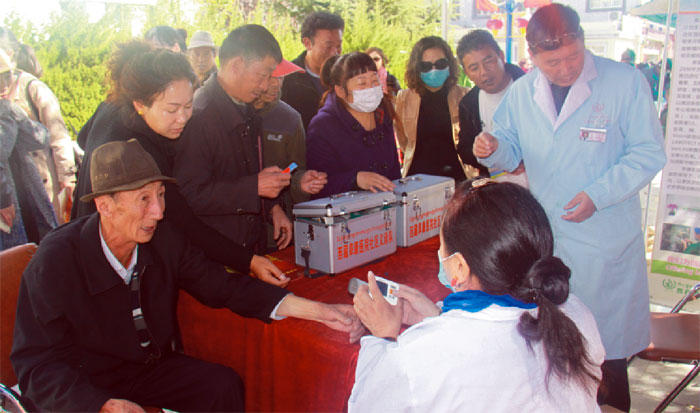 10月17日上午,按照區(qū)衛(wèi)計(jì)委指示,我院抽調(diào)4名專家組成“精準(zhǔn)扶貧,健康扶貧小分隊(duì)”在拉薩市宇拓路設(shè)點(diǎn)開(kāi)展以送醫(yī)送藥、送檢查、免費(fèi)義診、健康指導(dǎo)和咨詢服務(wù)等為一體的大型義診服務(wù)活動(dòng)。此次活動(dòng)免費(fèi)發(fā)放價(jià)值53000余元的藥品,接診1000余人次。受到了市民的歡迎和一致好評(píng)。