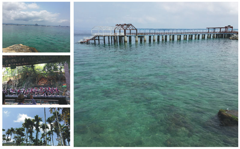 有了前一天的經(jīng)驗(yàn)教訓(xùn),我們接下來(lái)的交通工具都變成了公交車,從住的地方到游客服務(wù)中心差不多一個(gè)小時(shí)的車程,接著去買船票、門票,奔赴我們的下一個(gè)目的地--被譽(yù)為中國(guó)馬爾代夫的蜈支洲島,這也是到了三亞后第一次近距離地接觸大海,到了島上我們和小情侶分開玩耍,我和坤兒迫不及待地跑到海邊。光著腳丫走上沙灘,大海卷著溫柔的浪花涌向我們,也試探著去親吻我們的肌膚。一下,兩下,幾個(gè)回合下來(lái),我和海已完全融到了一起。熟悉了,海變得調(diào)皮了起來(lái),不但親吻我的肌膚,還企圖不良的吻濕了我的衣服,于是我就這么輕易地全身濕透了。