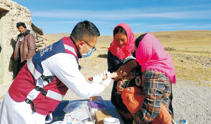 索南,革吉鎮(zhèn)衛(wèi)生院院長(zhǎng),全科醫(yī)生,能接生孩子能看病,包蟲病防治工作任務(wù)繁重,手下的醫(yī)務(wù)人員抽不開身,他親自帶隊(duì)分離標(biāo)本、全血離心,兢兢業(yè)業(yè),工作起來一坐就是一整天。牧區(qū)篩查他帶領(lǐng)團(tuán)隊(duì)卷上鋪蓋帶上方便面一走就是一兩個(gè)星期,家不要了,娃不要了,路途遙遠(yuǎn),崎嶇顛簸,腰也不要了。